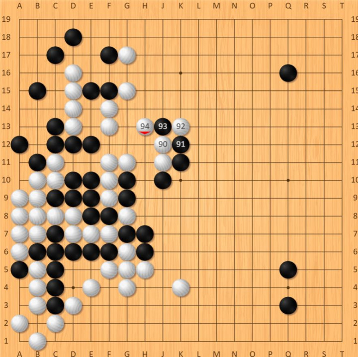 实战中,双方在右边开启厮杀,但是卞相壹九段在局面优势之下十分稳健,在局面上始终领先,柯洁九段的对局也逐渐陷入了绝望!